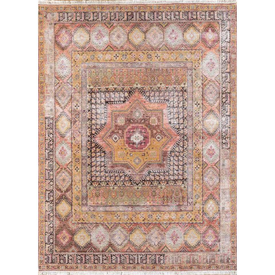 Erbe Classic Style Red Orange Hand Knotted Afghan Wool Rug AKWL-3090 Big Flat Weave Medallion Pattern for Home Teen Living Room