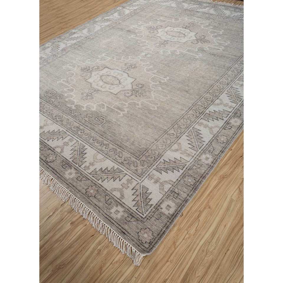 พรมขนสัตว์ถักมือ Erbe สีเทา-ดำ ลายเหรียญ เทคนิคการทอแบบแบน ขนาด 9x12 ฟุต สำหรับบ้าน สไตล์โบโฮ ห้องโถง พรมจาอีปุร์ ZA
