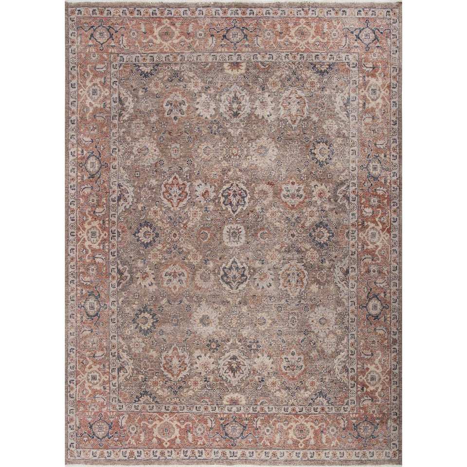 พรมขนสัตว์ถักมือ Erbe สีเบจ-น้ำตาล ลายเหรียญตราแบบนามธรรม รูปทรงสี่เหลี่ยมผืนผ้า สำหรับบ้าน ห้องนั่งเล่น ทางเดิน-รุ่นสี่เหลี่ยมผืนผ้าขนาด 9x12