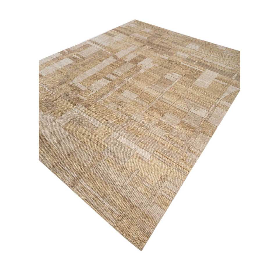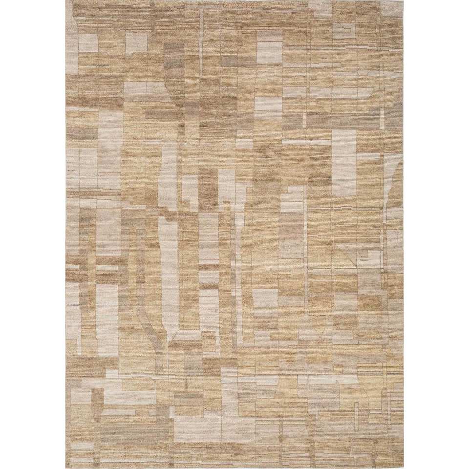 พรมขนสัตว์ถักมือขนาดใหญ่ลายเรขาคณิตสีเบจและสีน้ำตาลสำหรับตกแต่งห้องนั่งเล่นและทางเดิน - Reb-1490