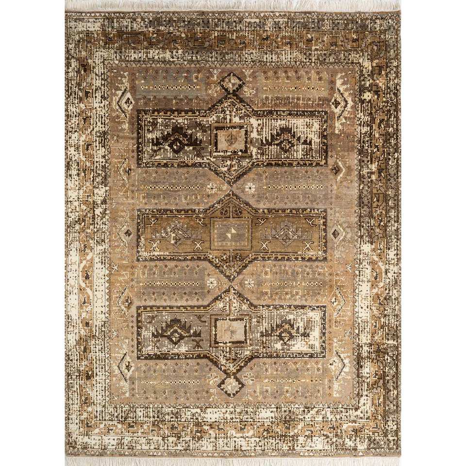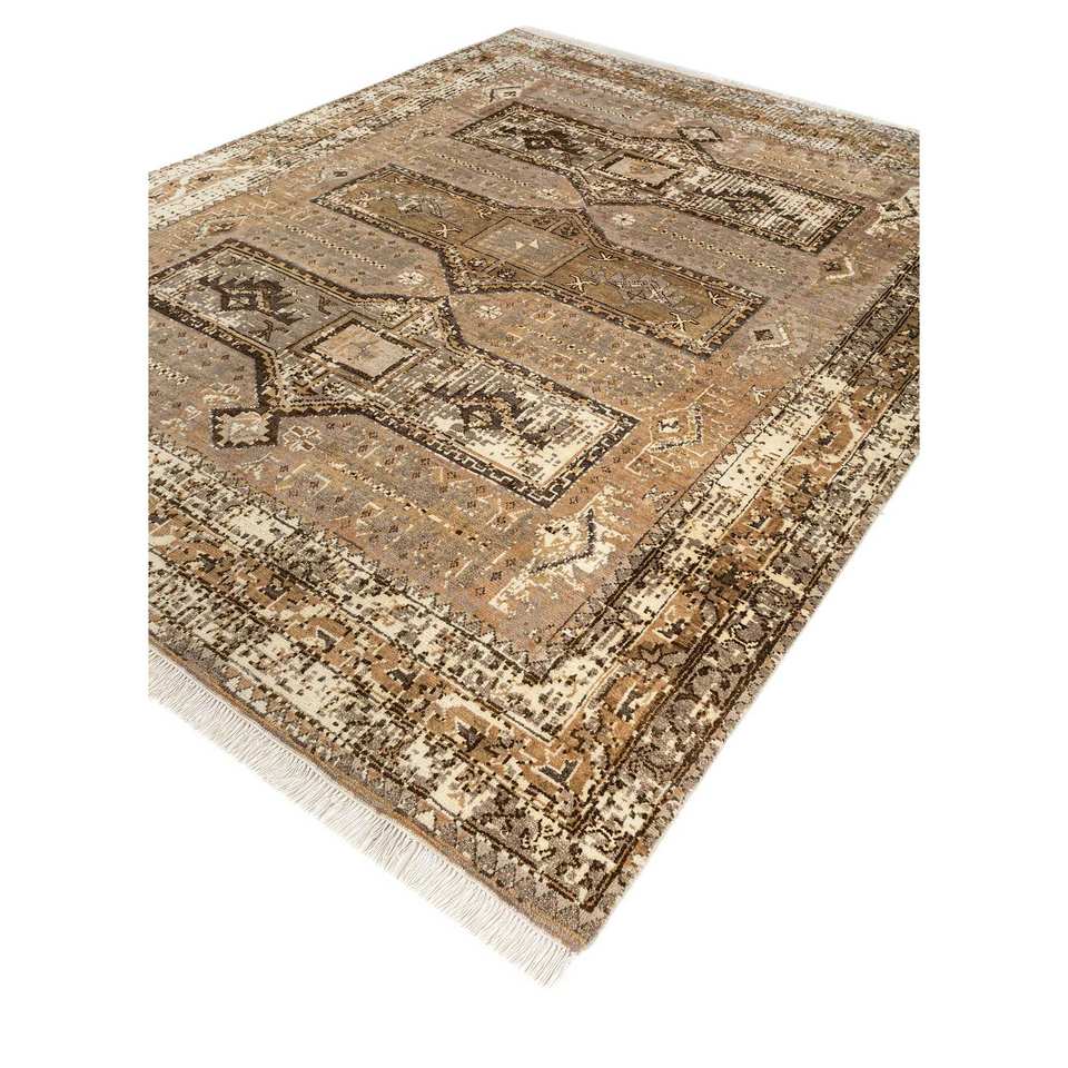 พรมขนสัตว์ถักมือขนาดใหญ่ Erbe รุ่น AKWL-13024 สีเบจและสีน้ำตาล ลายเรขาคณิต สำหรับตกแต่งห้องนั่งเล่นวัยรุ่น