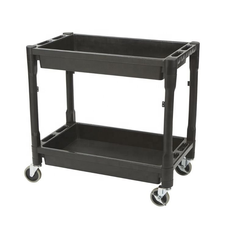 รถเข็นอเนกประสงค์แบบ 2 ชั้น รับน้ำหนักได้ 500 ปอนด์ โครงสร้าง 2 ชั้น ล้อ 4 ล้อ พร้อมที่จับตามหลักสรีรศาสตร์