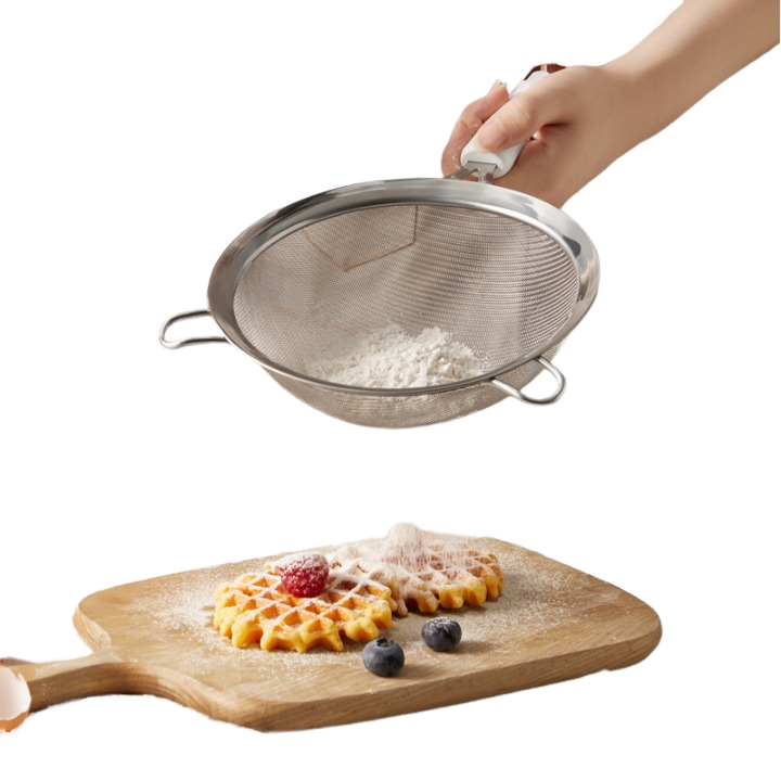 ที่กรองแป้งสแตนเลสแบบมีด้ามจับตามหลักสรีรศาสตร์ 2 ขนาด สำหรับการอบ กาแฟ ชา น้ำผลไม้