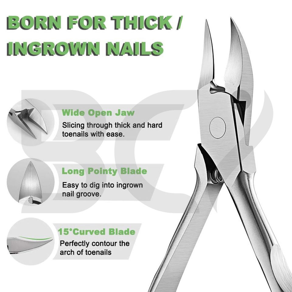 กรรไกรตัดเล็บเท้าสแตนเลสเกรดสูงพร้อมใบมีดโค้งสำหรับนิ้วมือตามหลักสรีรศาสตร์