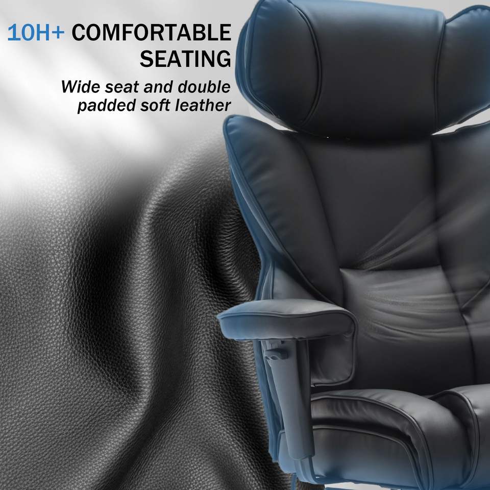 เก้าอี้สำนักงานที่เหมาะกับการทำงานในบ้านปรับความสูงได้หนังพนักพิงเอวแบบปรับเอนได้-สีดำ