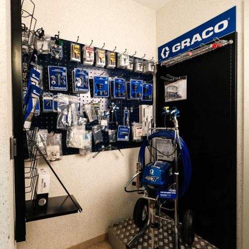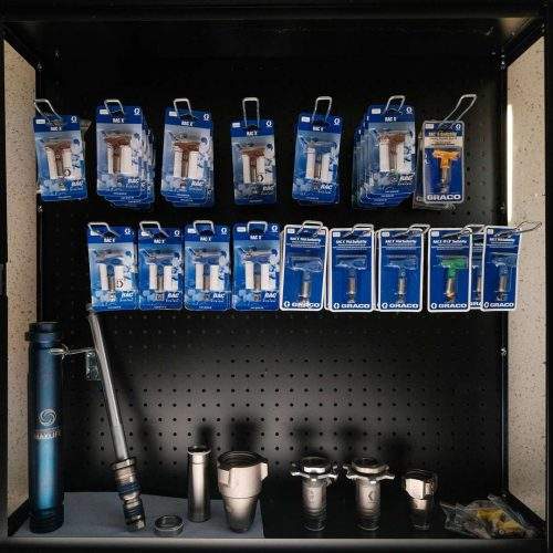 ที่ยึดหัวฉีดและอุปกรณ์ต่อขยายตามหลักสรีรศาสตร์เพื่อการทำงานที่ปลอดภัยกับปืนพ่นสีแบบไร้อากาศ