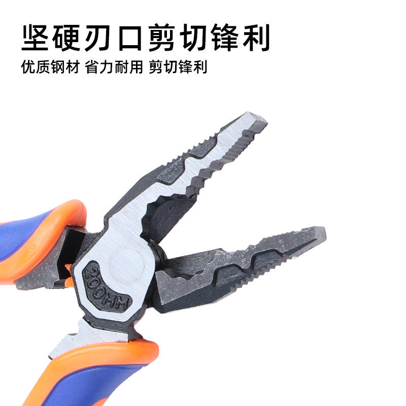 คีมตามหลักสรีรศาสตร์ 8 นิ้ว ทำจากเหล็กโครเมียมวาเนเดียม เกรดอุตสาหกรรม ปากเรียบ ตัดลวดได้ ด้ามจับสีส้ม เครื่องมืออเนกประสงค์