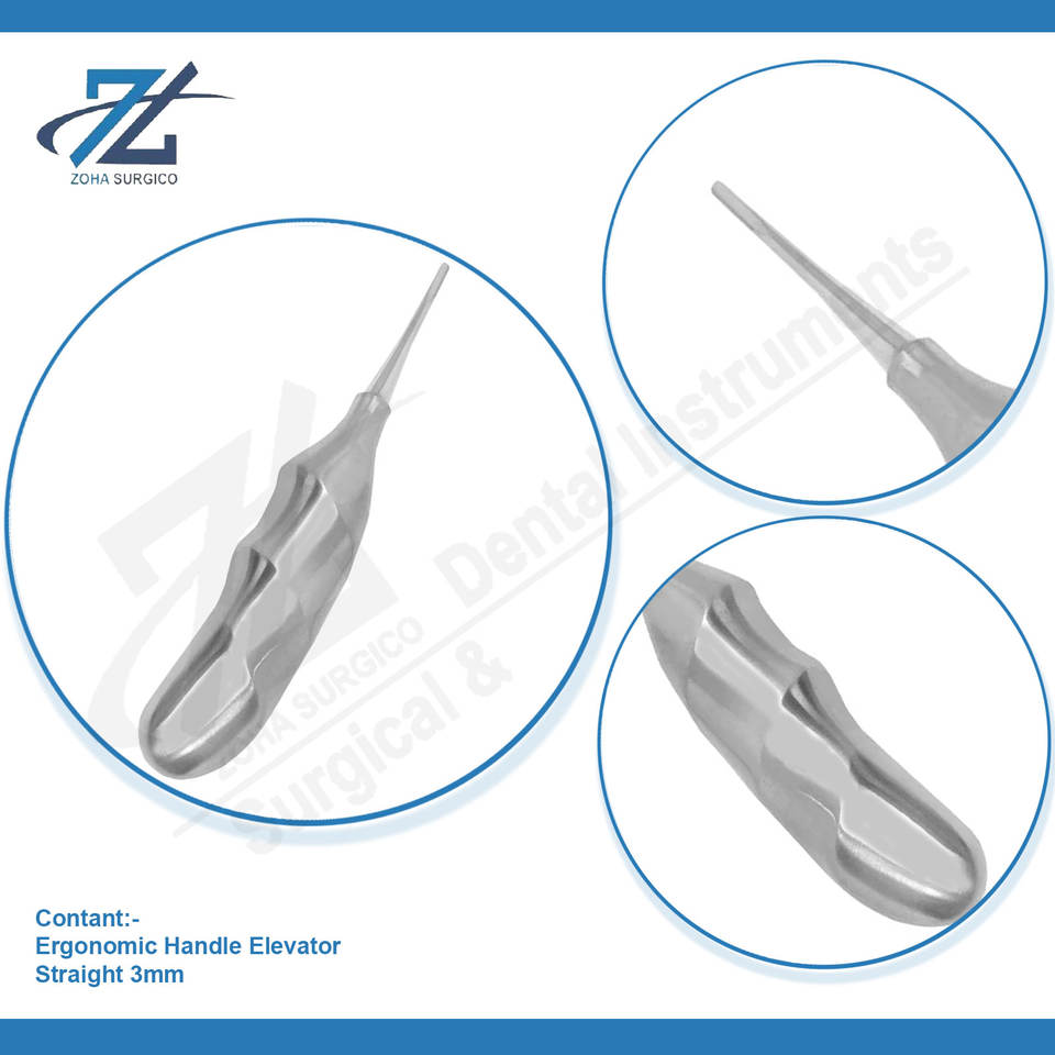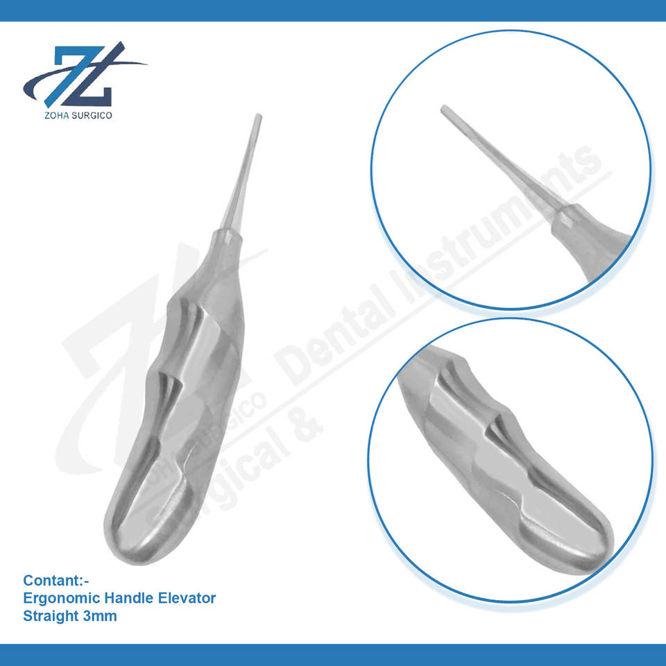 เครื่องมือถอนฟันปลายตรงแบบกลวง ทำจากสแตนเลส 3 มม. ออกแบบตามหลักสรีรศาสตร์ สำหรับทำความสะอาดและอุดฟันด้วยมือ