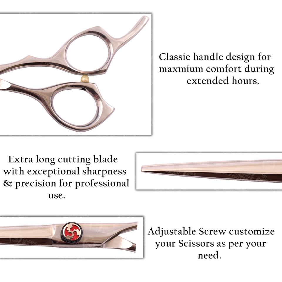 กรรไกรตัดผมแบบมืออาชีพ ออกแบบตามหลักสรีรศาสตร์เพื่อความสะดวกสบายในการใช้งาน ควบคุมการทรงตัวได้ดี และเหมาะสำหรับการใช้งานเป็นประจำในร้านตัดผม