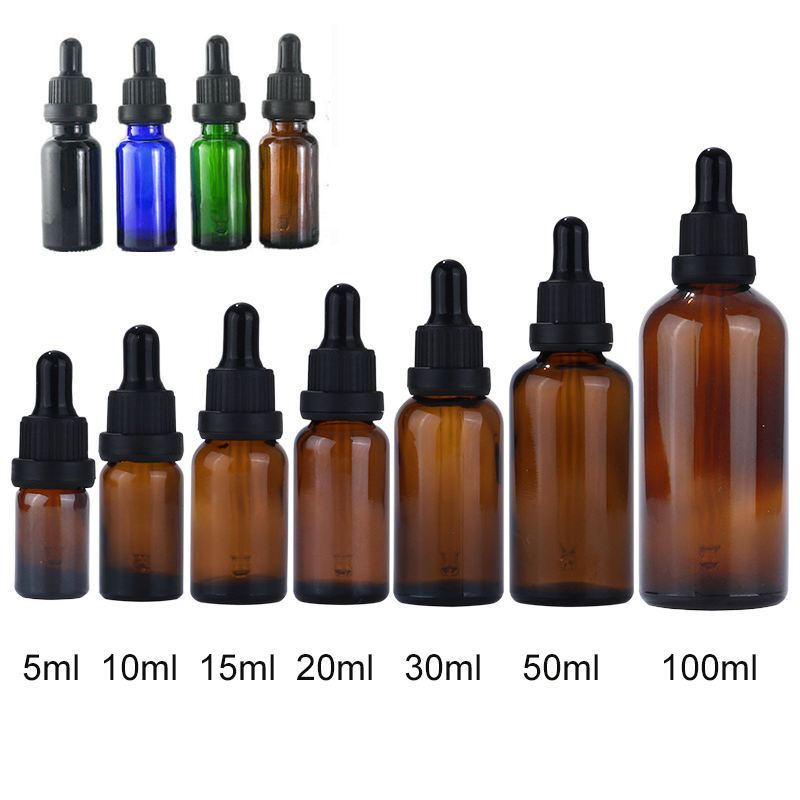 ขวดแก้วน้ำมันหอมระเหยแบบหยด Eric Amber Custom Color ขนาด 5/10/15/20/30/50 มล. 100 มล. พร้อมหัวหยด
