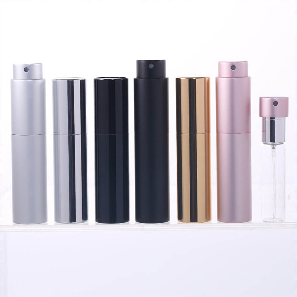 ขวดน้ำหอมแบบเติมได้ พกพาสะดวก ผลิตจากแก้วและอะลูมิเนียม ขนาด 5 มล. 8 มล. 10 มล. 15 มล. 20 มล. ยี่ห้อ Eric Custom Logo รุ่น Matte Twist up