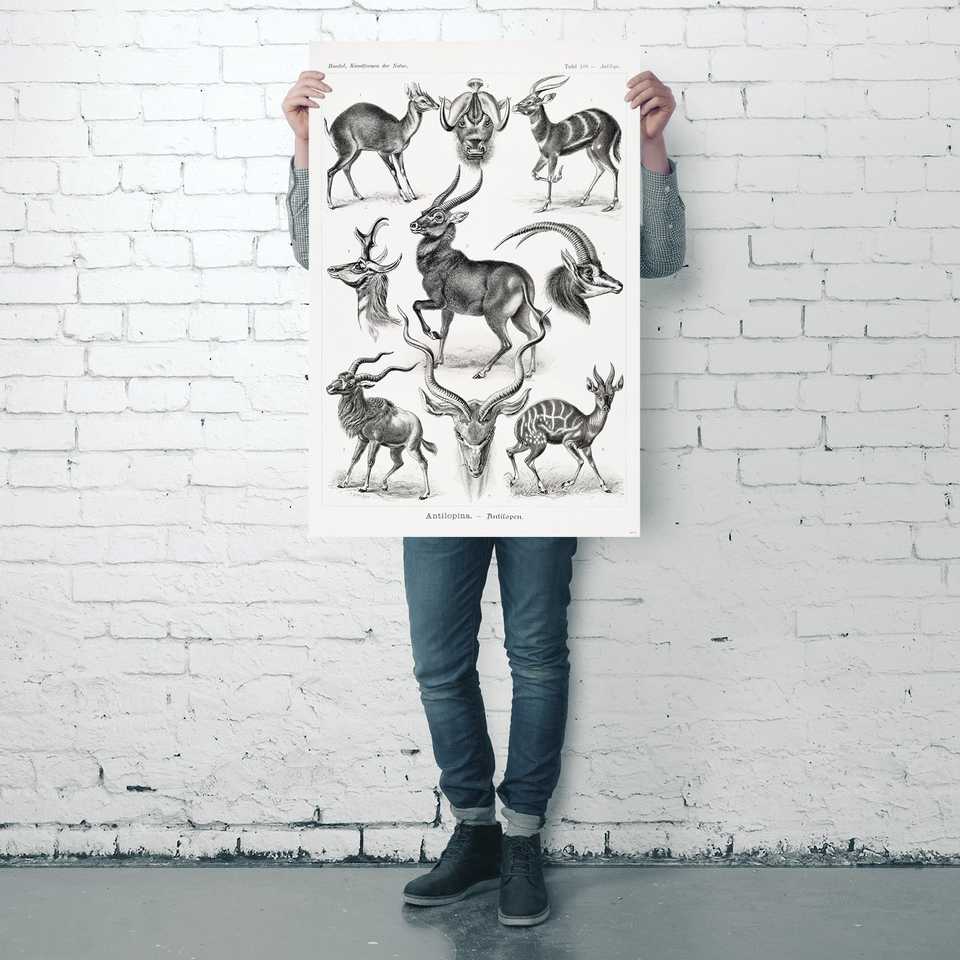 โปสเตอร์ศิลปะรูปทรงสัตว์แอนทีโลปของเอิร์นส์ ฮาเคิล พิมพ์บนผ้าเรซิ่นสำหรับตกแต่งผนังหรือภาพวาดสัตว์ DIY
