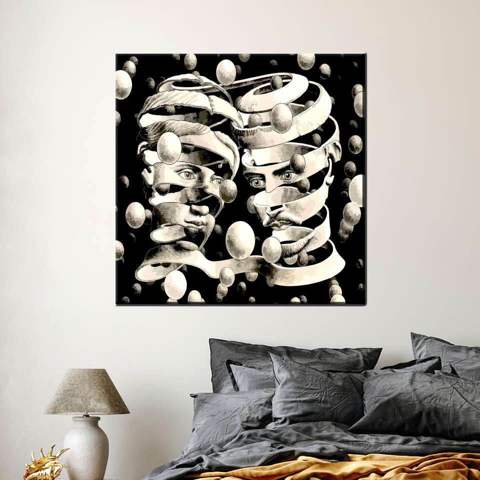 ภาพพิมพ์บนผ้าใบลายเกลียวสไตล์เอสเชอร์ ศิลปะภาพลวงตาแบบเหนือจริง ห่อหุ้มอย่างดี