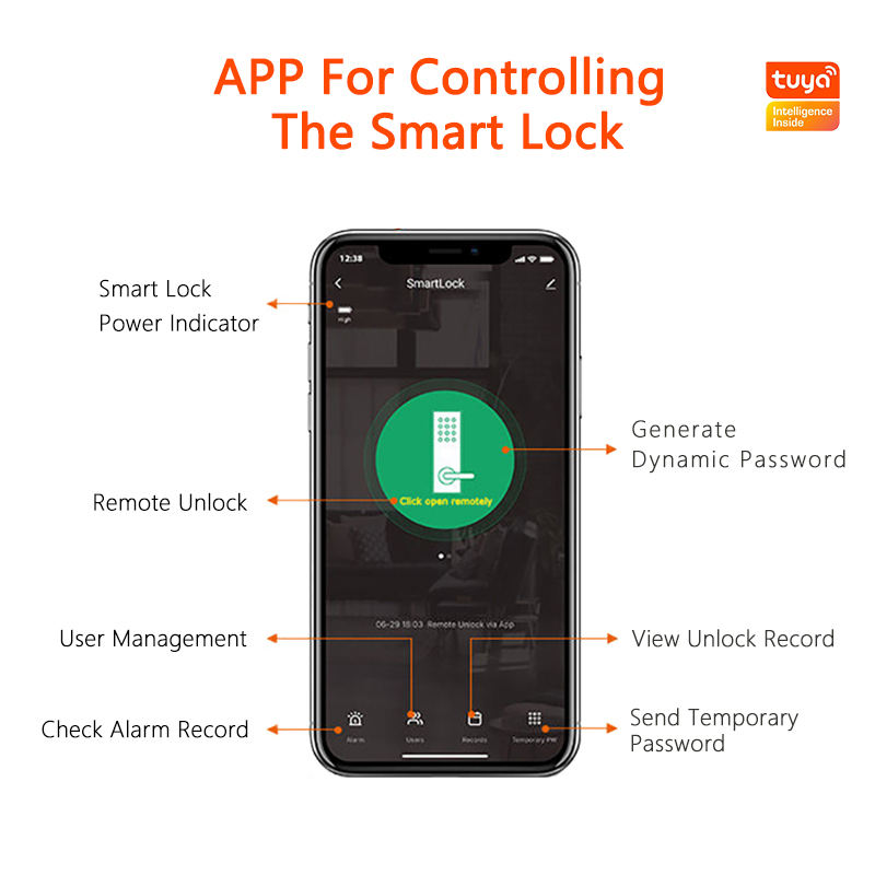 Tuya แอปลายนิ้วมือล็อกประตูอัจฉริยะไบโอเมตริกซ์