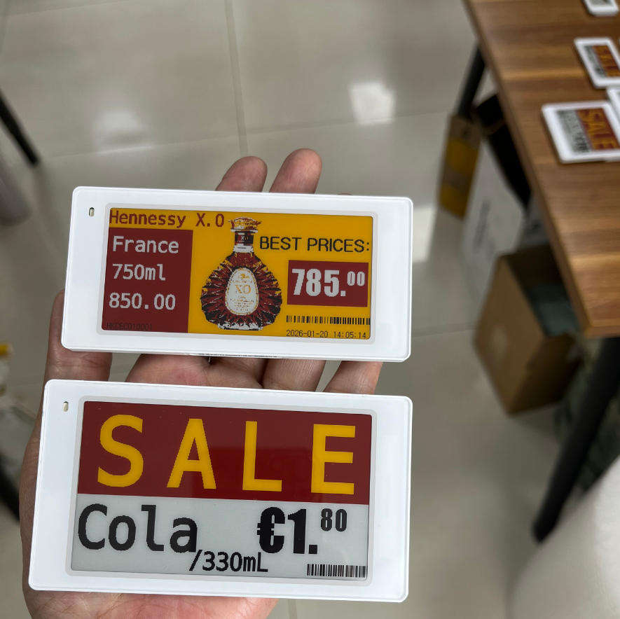 ป้ายราคาอิเล็กทรอนิกส์ขนาด 3.5 นิ้ว ป้ายดิจิตอลแบบ E-Paper สำหรับติดชั้นวางสินค้า จอแสดงผล E-Ink สี่สี ระบบ EAS บลูทูธ NFC API ESL