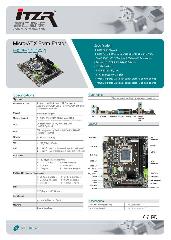หน่วยความจำ:2 * DDR4 2133/2400 DIMM, สูงสุด64 กิกะไบต์