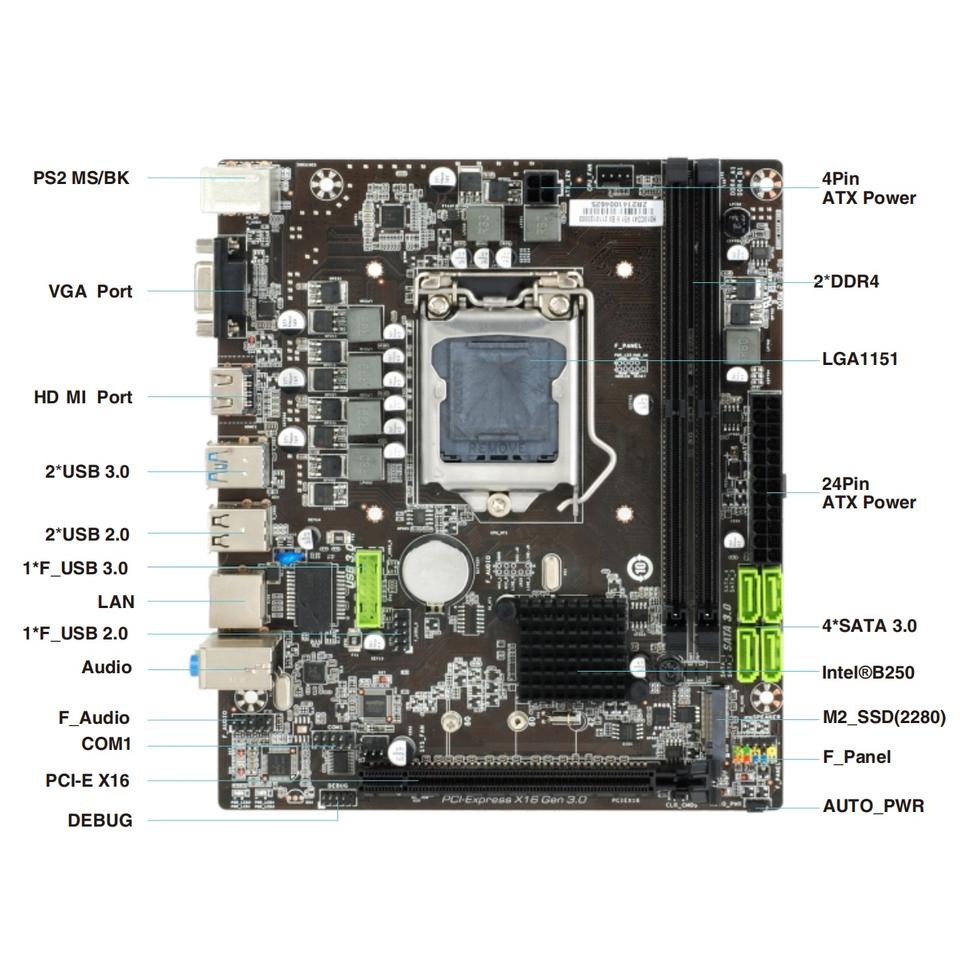 ชิปเซ็ต Intel B250: ให้ประสิทธิภาพที่เชื่อถือได้และมีประสิทธิภาพ รองรับโปรเซสเซอร์ Intel รุ่นที่ 6 ถึงรุ่นที่ 9