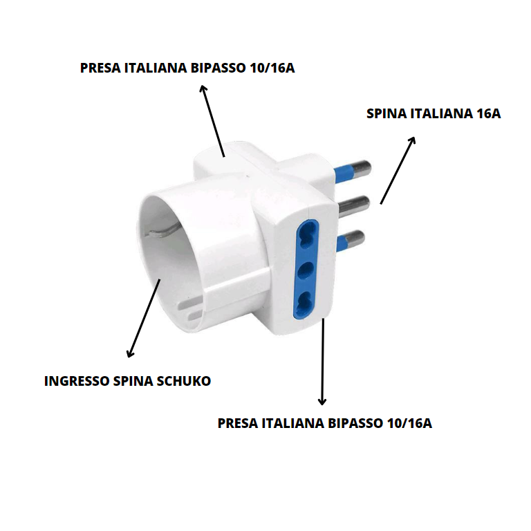อะแดปเตอร์โจมตีสามตัว esova สีขาวขนาดใหญ่16แอมแปร์ SCHUKO