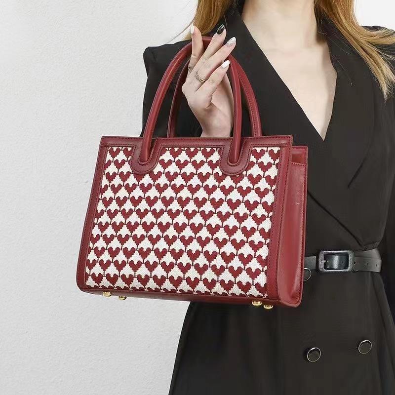 กระเป๋าสะพายไหล่ผู้หญิงลายหัวใจ ดีไซน์พิเศษ กระเป๋าถือหนังสำหรับผู้หญิง แบรนด์หรู
