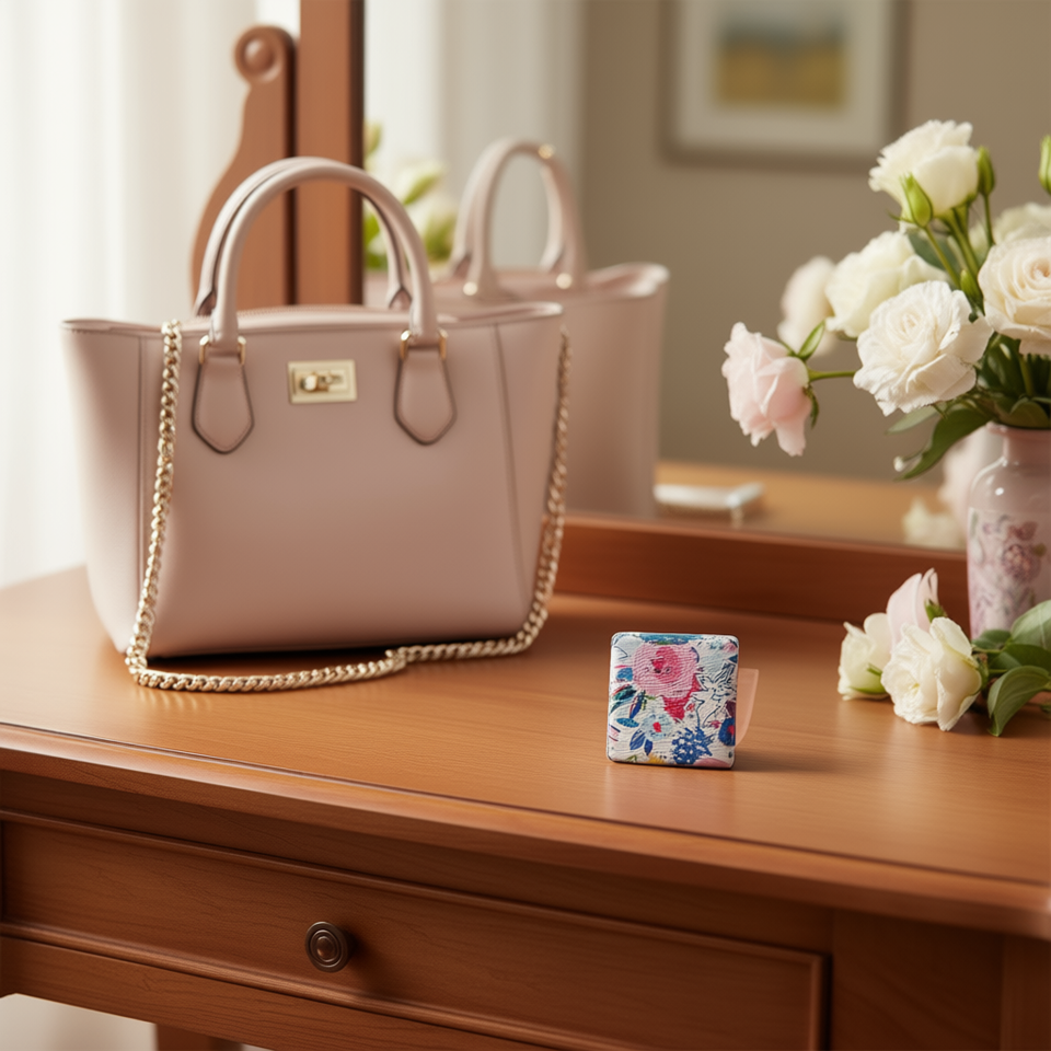 กระจกพกพาขนาด 6.3 ซม. รูปทรงสี่เหลี่ยม ลายภาพวาดสีน้ำมัน พร้อมลายดอกไม้ สำหรับผู้หญิงและเด็กผู้หญิง