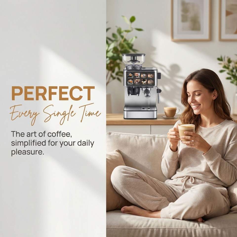 เครื่องชงกาแฟเอสเพรสโซ่ กำลังไฟ 1350 วัตต์ พร้อมระบบทำความสะอาดอัตโนมัติ ระบบชงคู่ และปุ่มควบคุมแบบสัมผัสเดียวเพื่อการใช้งานที่ง่ายดาย