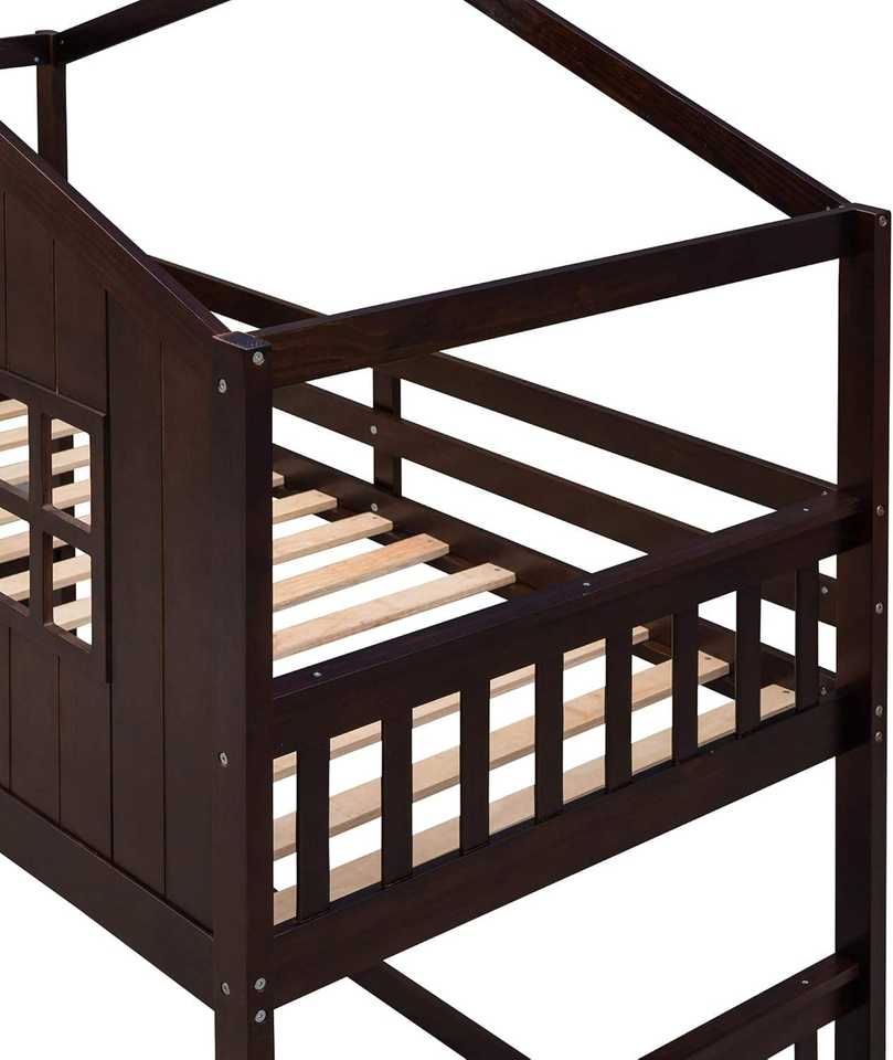 เตียงสองชั้นแบบดั้งเดิมทำจากไม้เอสเพรสโซ แข็งแรงทนทาน พร้อมบันไดและราวกั้น สำหรับอพาร์ทเมนต์ โรงแรม บ้านพักตากอากาศ และห้องนั่งเล่น