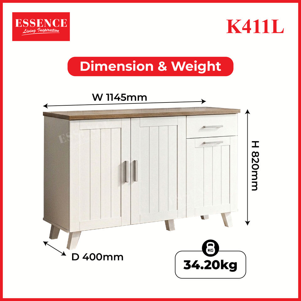 ตู้ครัวเอสเซ้นส์ โมเดิร์น รุ่น K411(L) สีไวท์โอ๊ค + วอลนัท ชิปบอร์ด แผ่นเอ็มดีเอฟ เมลามีน พียู ลามิเนต ท็อปโต๊ะ ลิ้นชัก เบเกอร์ส