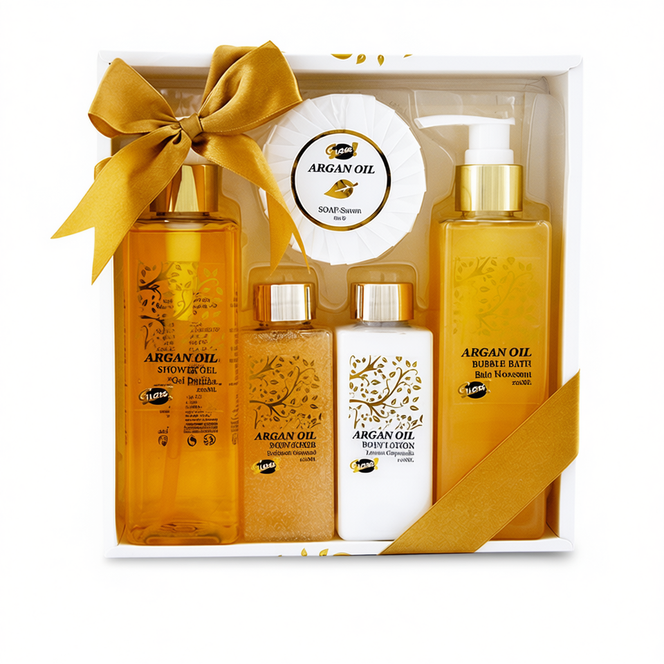 เงางาม! ชุดของขวัญผลิตภัณฑ์ดูแลผิวกายออร์แกนิคสุดหรู - คอลเลคชั่นผลิตภัณฑ์บำรุงผิวและอาบน้ำด้วยน้ำมันอาร์แกน สำหรับทุกเพศ