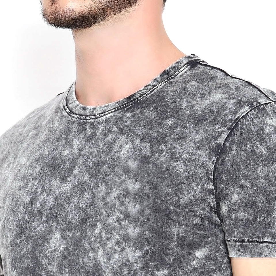 เสื้อยืดผู้ชายสุดเท่ ผลิตจากผ้าฝ้าย 100% เนื้อนุ่ม สวมใส่สบายด้วยเทคนิคการฟอกสีแบบ Acid Wash ทรงลำลองสำหรับผู้ชาย