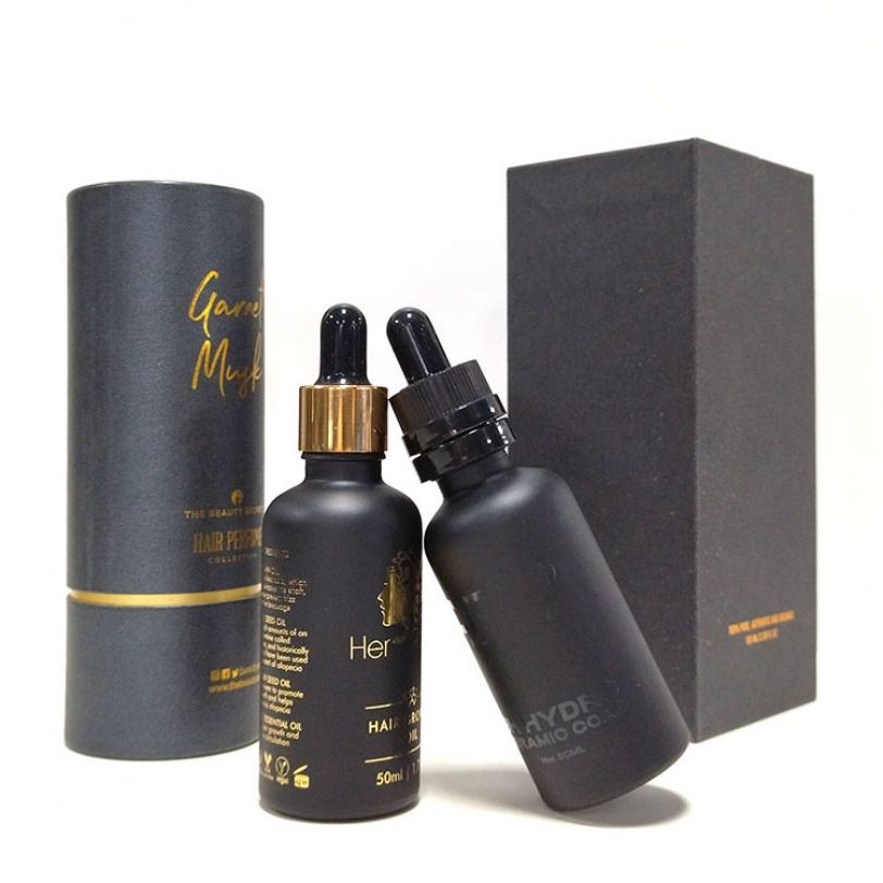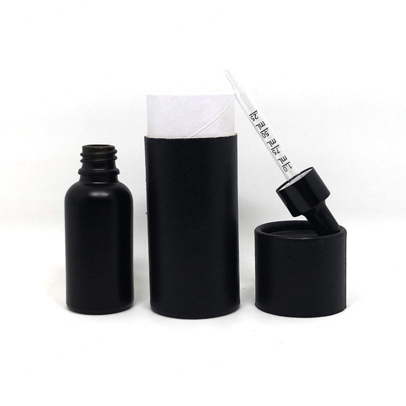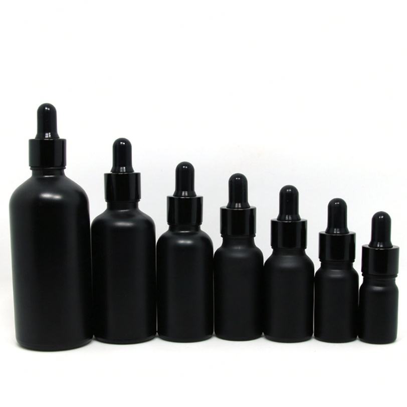 บรรจุภัณฑ์น้ำมันหอมระเหย 5 มล. 10 มล. 15 มล. 30 มล. 50 มล. 100 มล. ขวดแก้วหยดเซรั่มสีดำด้านสำหรับเครื่องสำอาง พร้อมกล่องกระดาษ