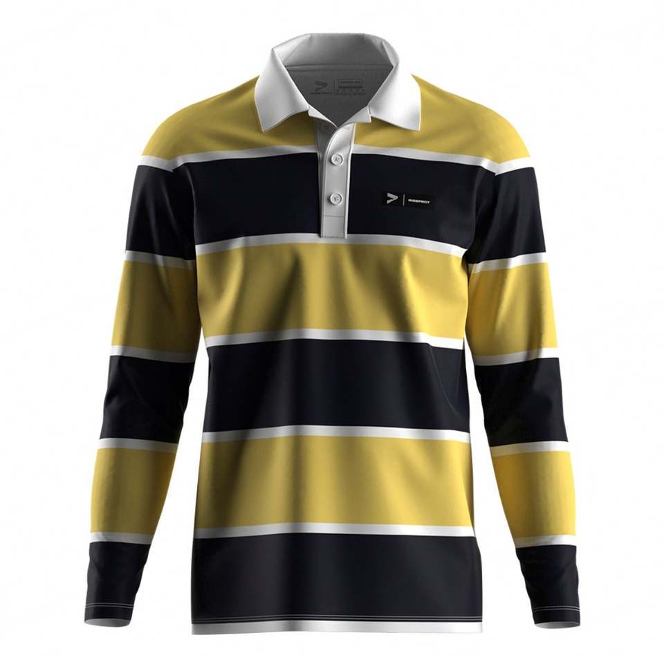 เสื้อโปโลผู้ชายทรงปกติ ผ้าโพลีเอสเตอร์ปิเก้ ลายทาง สำหรับกอล์ฟและรักบี้