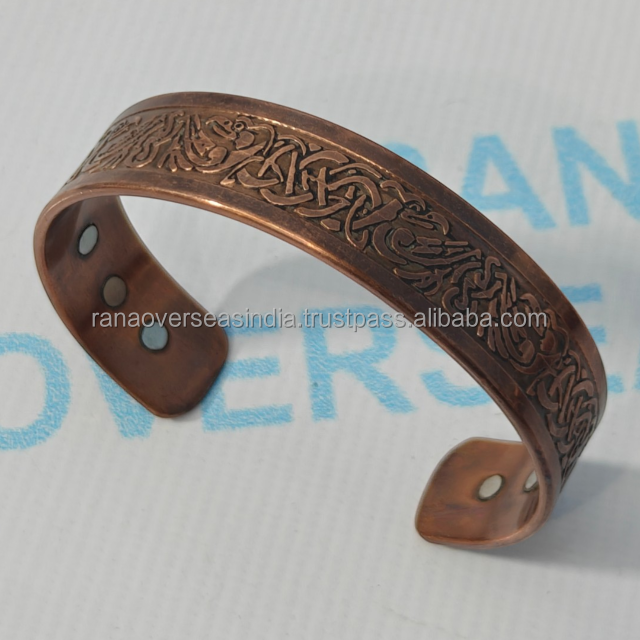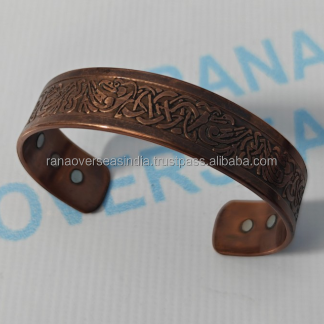 กำไลข้อมือทองแดงสลักลายทันสมัย ทำด้วยมือ เป็นมิตรกับสิ่งแวดล้อม เครื่องประดับบำบัดเพื่อพลังงานธรรมชาติ ช่วยเสริมสร้างความมีชีวิตชีวาและความสมดุลทางสุขภาพ
