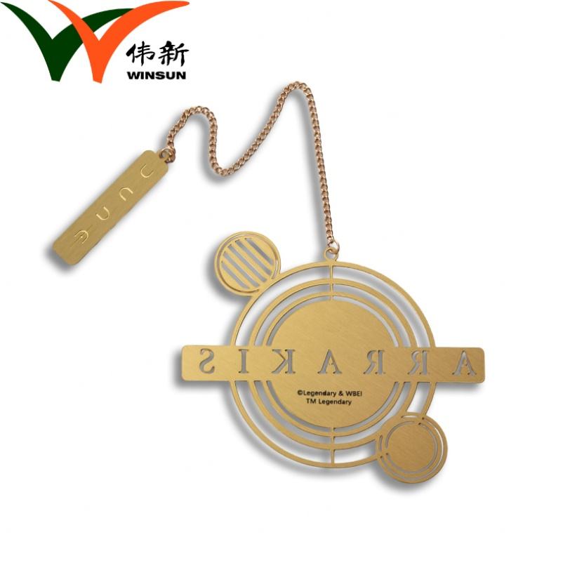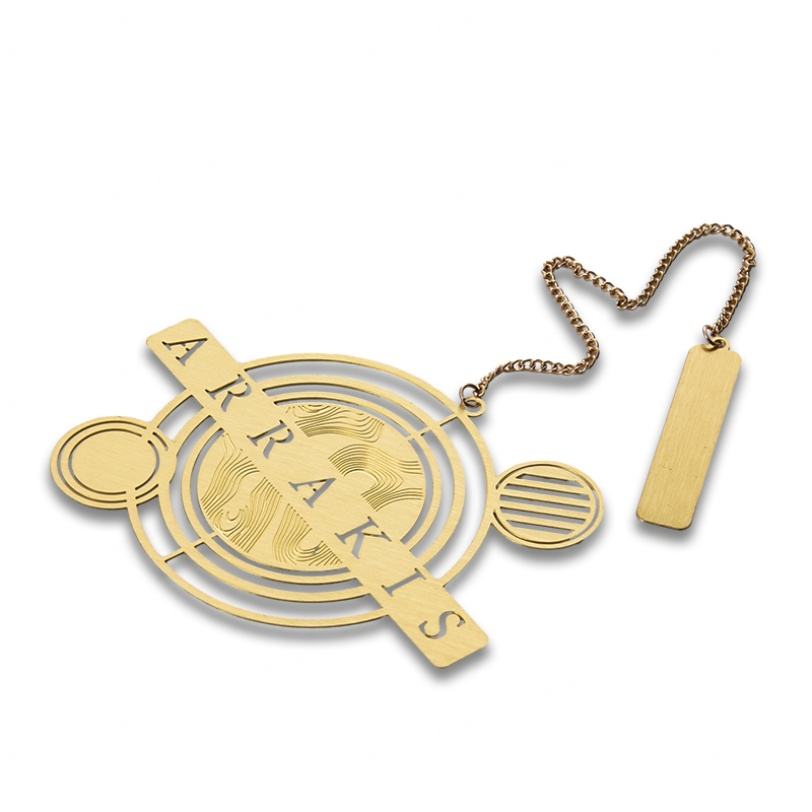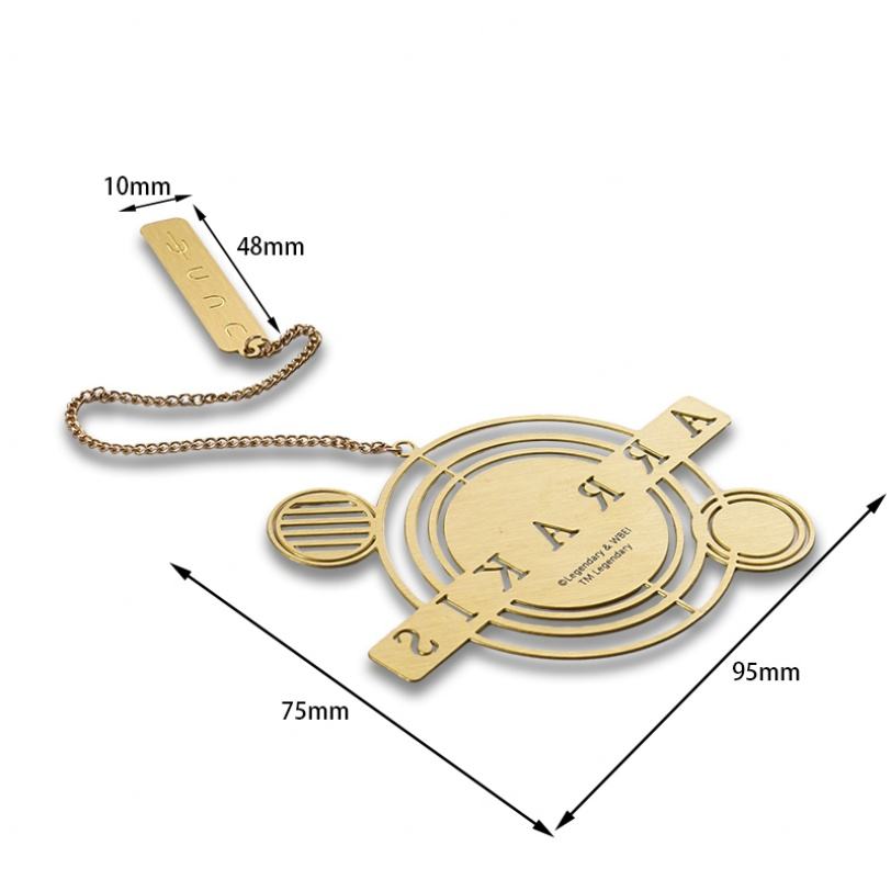 บุ๊คมาร์คโลหะสีทองทองเหลืองสลักโลโก้ตามสั่ง พร้อมสายคล้องและจี้ห้อย
