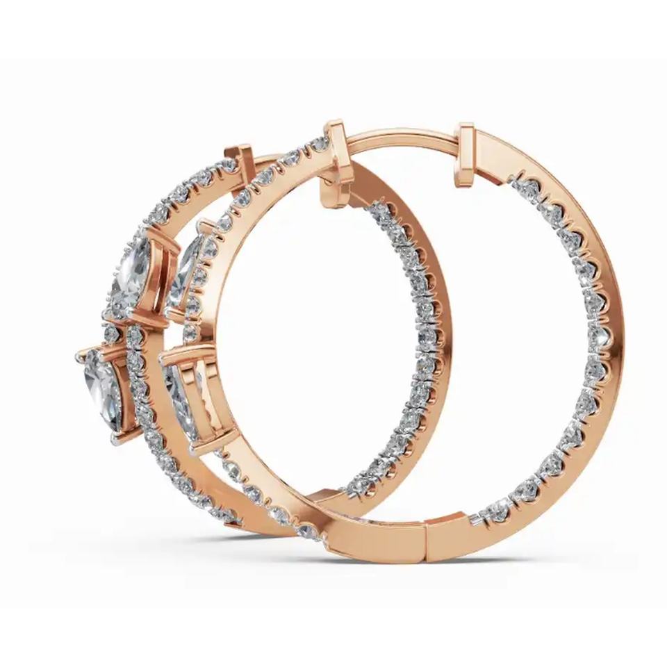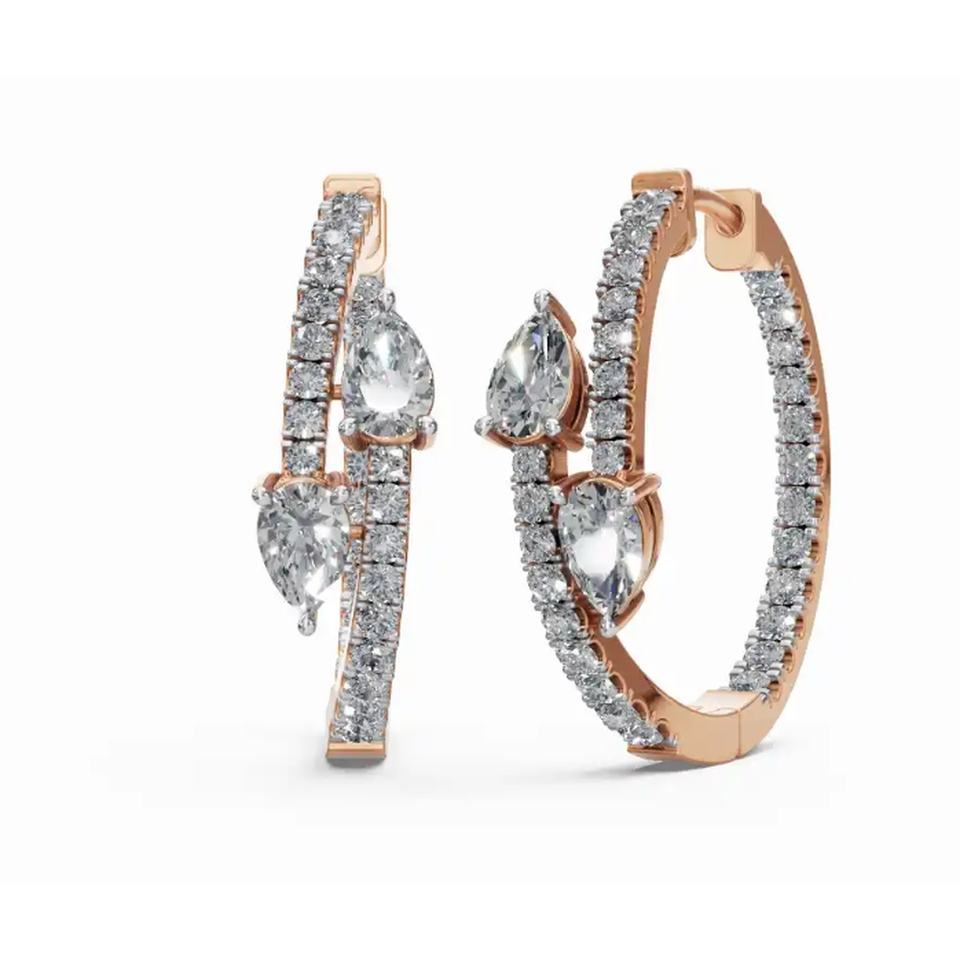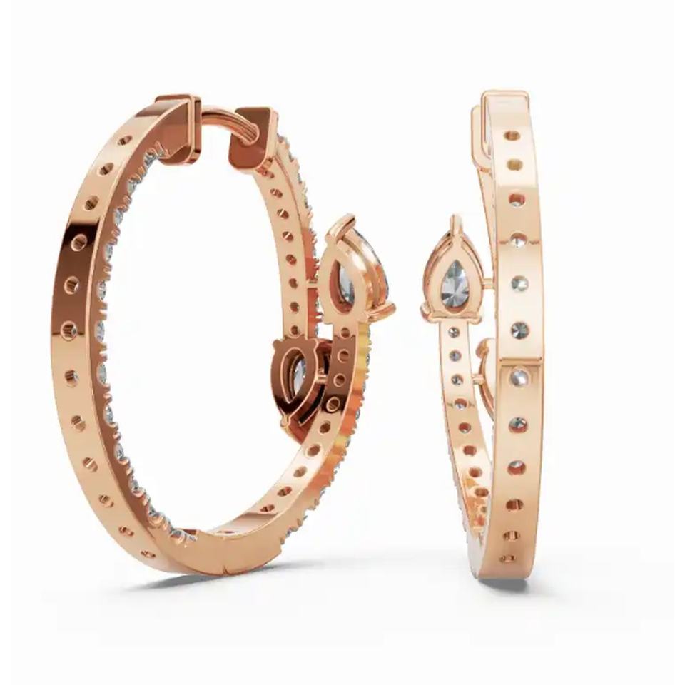 ต่างหูห่วงเพชรลูกแพร์บานนิรันดร์9 KT 14 KT 18 KT เครื่องประดับปลูกในห้องปฏิบัติการทองคำขายส่งส่งออก B2B