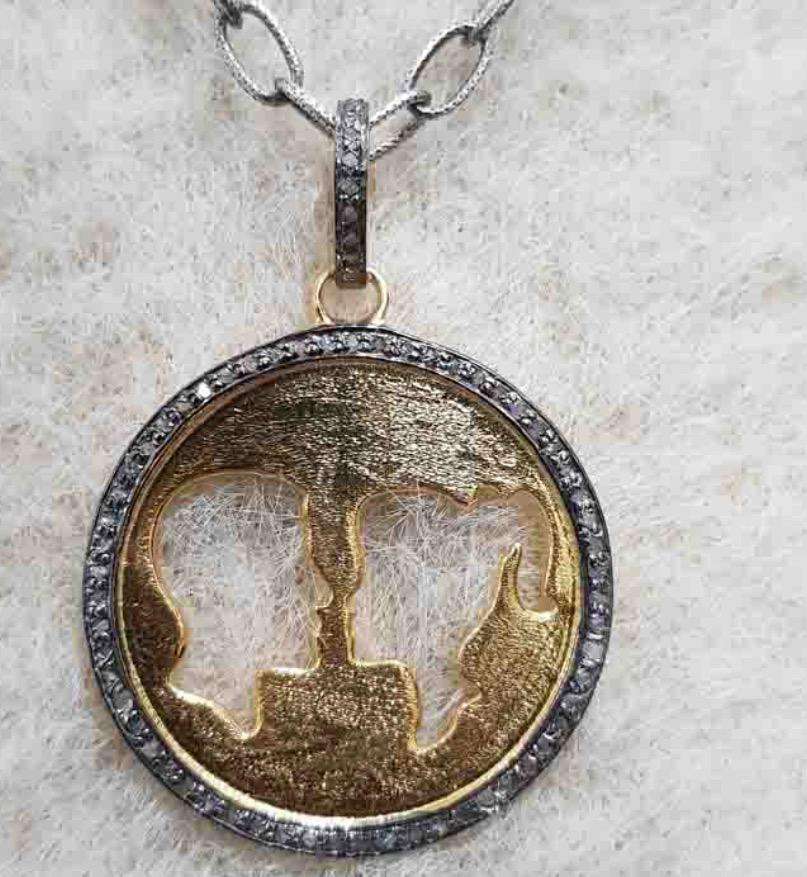 จี้คู่รักวินเทจ925เงินสเตอร์ลิงสีดำโรเดียมประดับเพชรปูตามธรรมชาติ30x30มม. สำหรับงานแต่งงาน