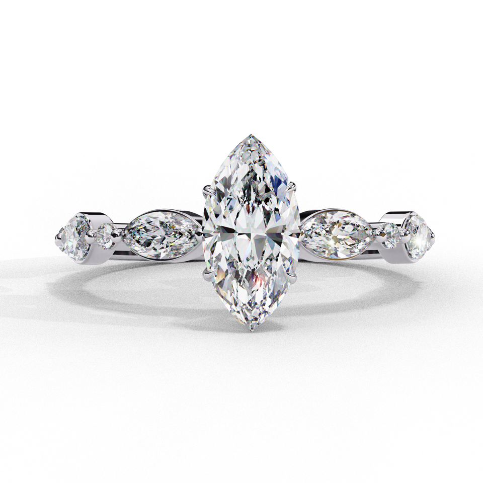 แหวนเพชรซิมโฟนี ดีไซน์หรูหราแบบมาร์ควิส ทองเหลือง 925 ประดับเพชรแท้ งานฝีมือชั้นดี ออกแบบโดยดีไซเนอร์