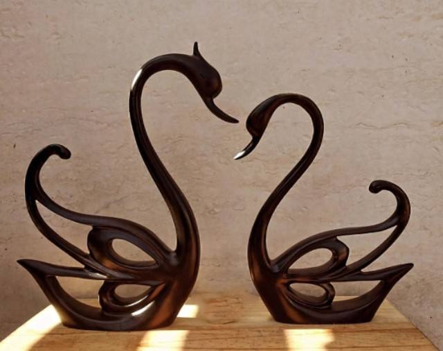 ของตกแต่งงานแต่งงาน วันครบรอบ วันดิวาลี ของขวัญหายป่วย รูปคู่หงส์ ศิลปะอาร์ตเดโค ทำจากไม้ ทนทานตลอดกาล