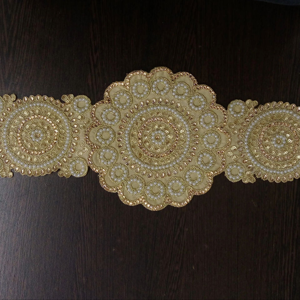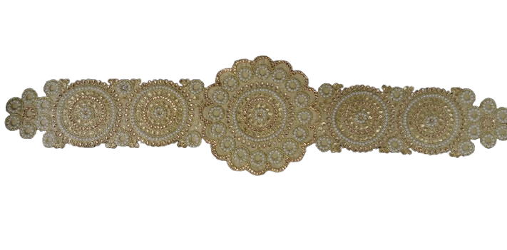 เข็มขัดแต่งงานสีฟ้าอ่อนประดับด้วยลูกปัดและดอกไม้