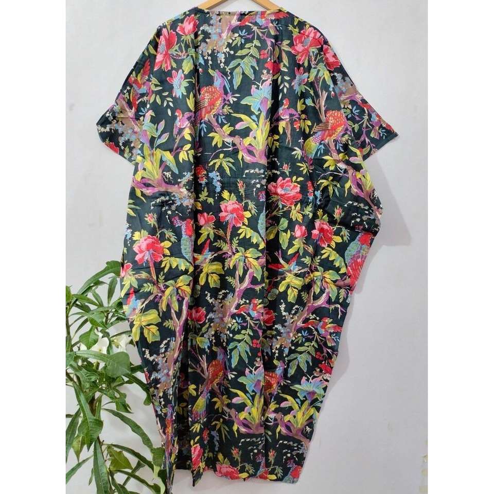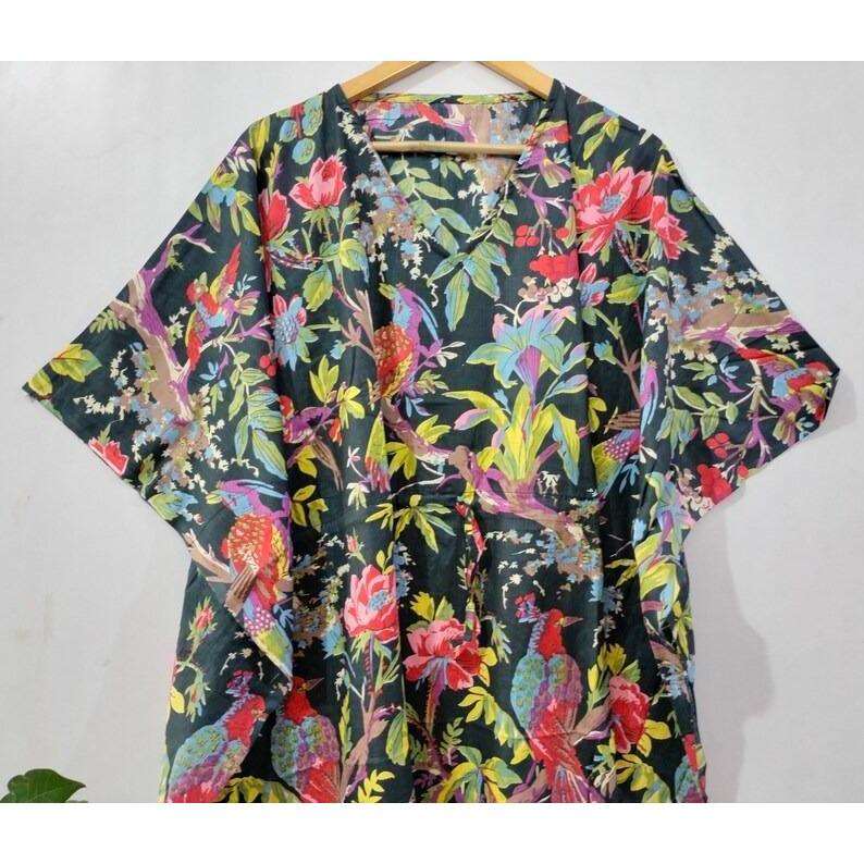 เอธิคนิค คราฟท์ ฮับ ECH-320 ชุดเดรสยาวผ้าฝ้ายเนื้อนุ่มสไตล์อินเดียสวยงาม แขนสั้น พิมพ์ลายดอกไม้ คาฟตัน ผู้หญิง ไซส์ XL