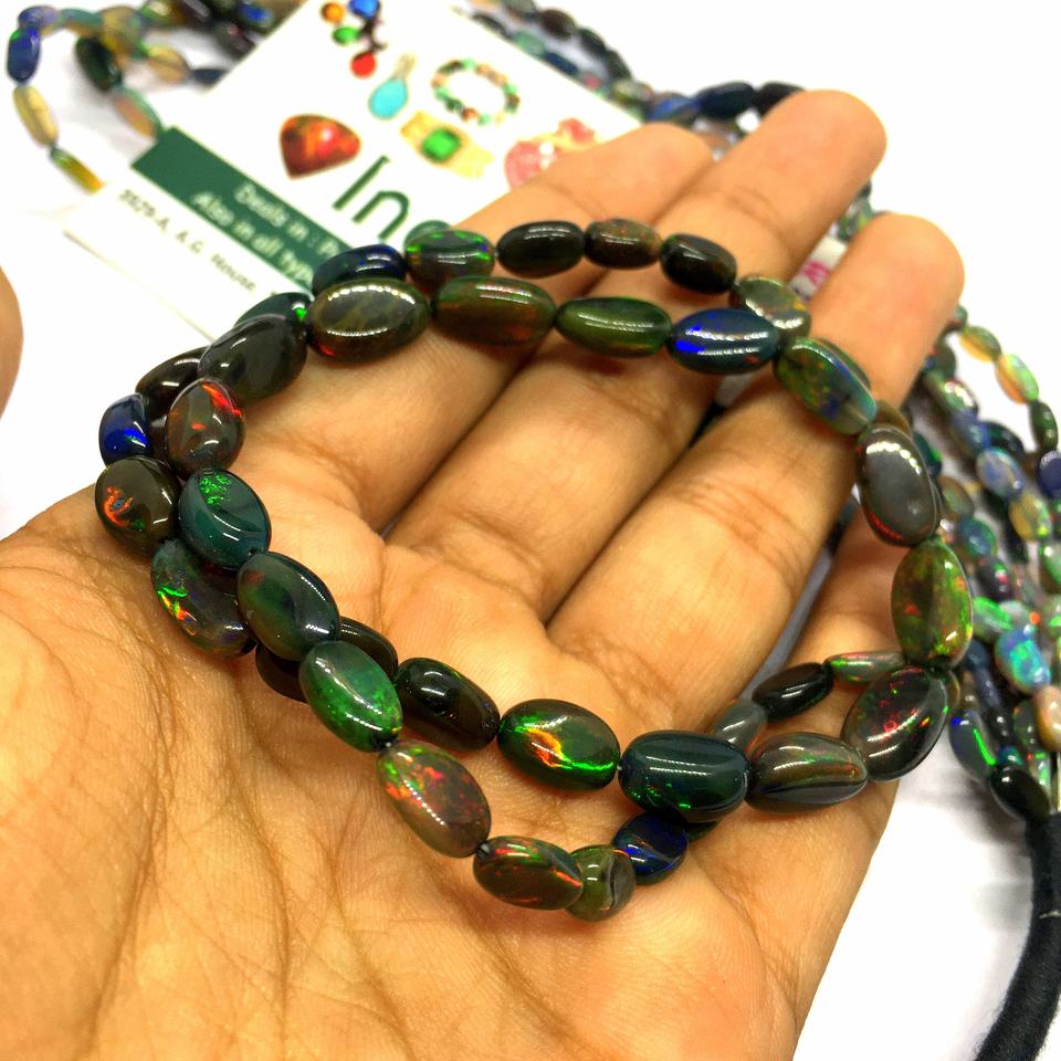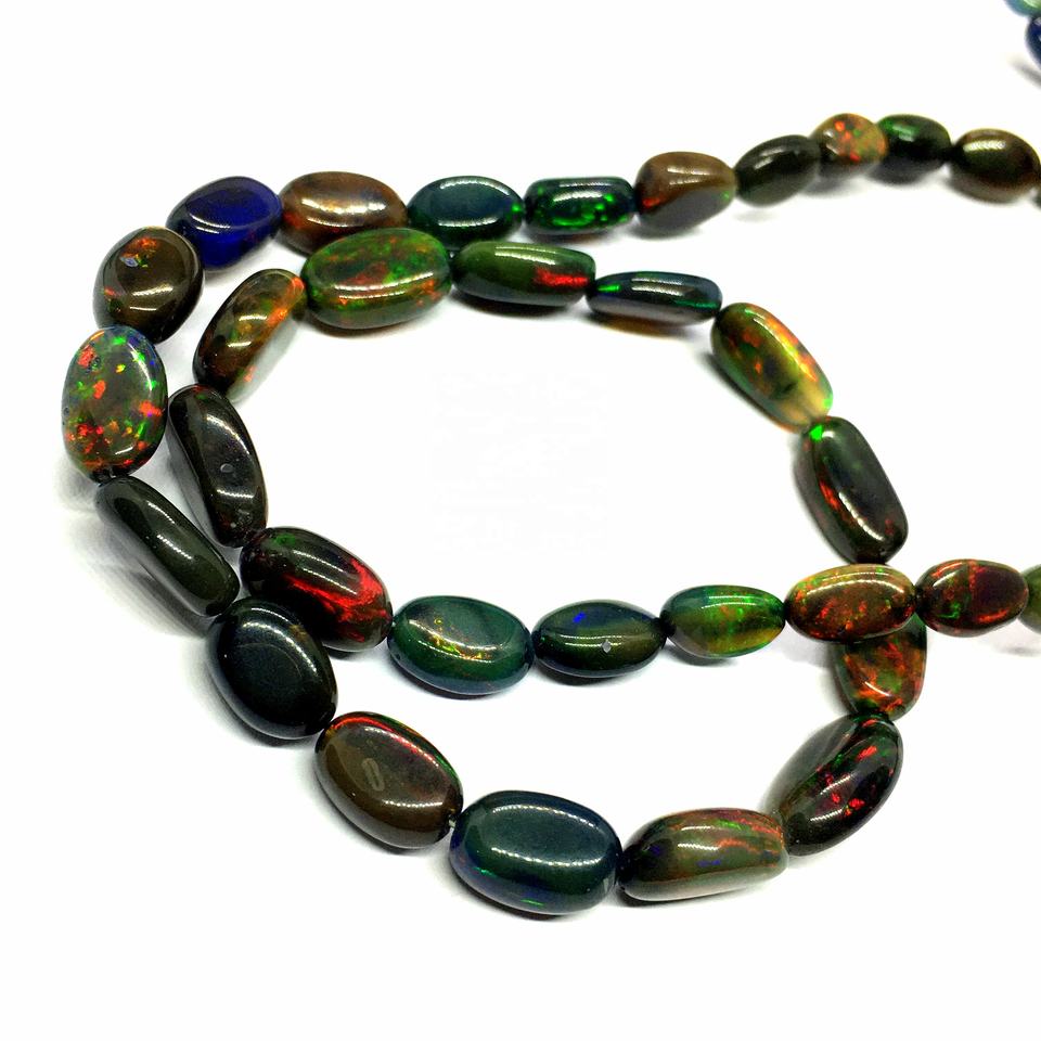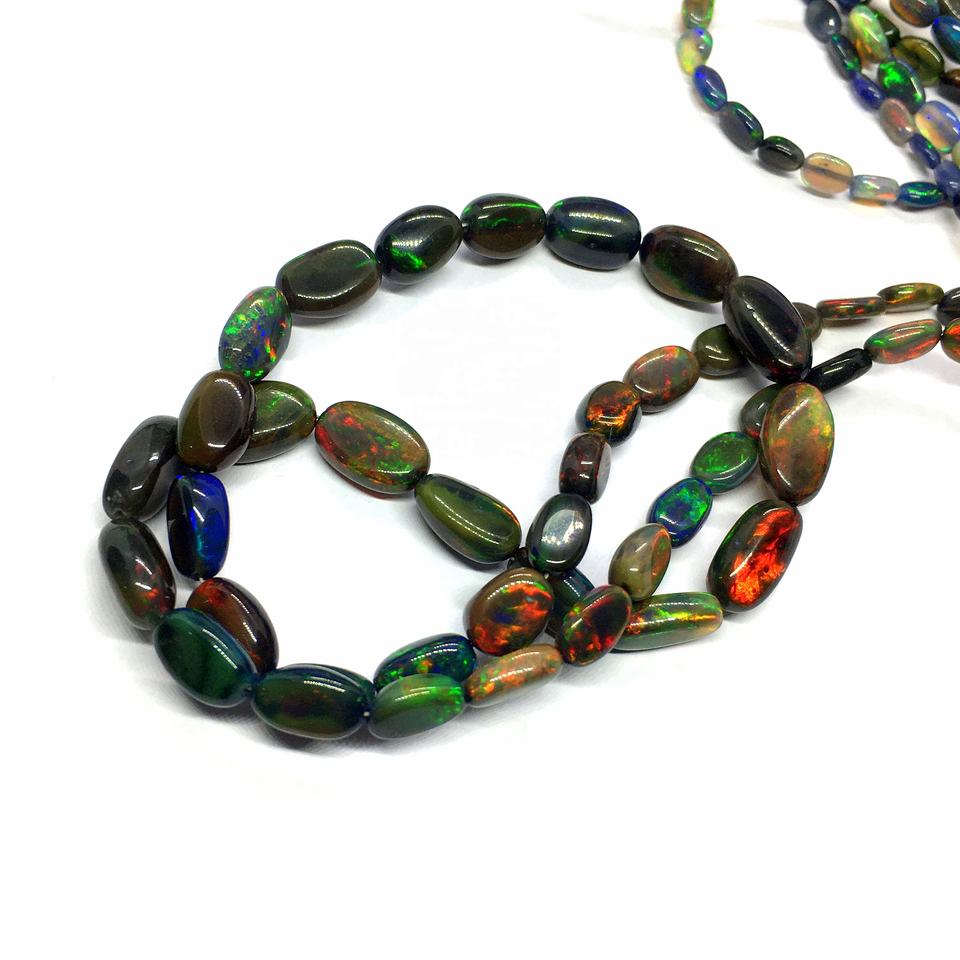 ลูกปัดโอปอลสีดำจากเอธิโอเปียนหลากสีลูกปัดโอปอลสีพื้นอัญมณีหลวม