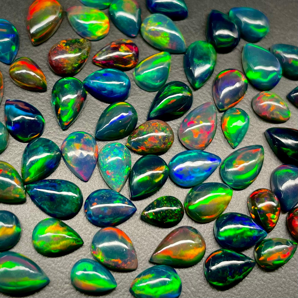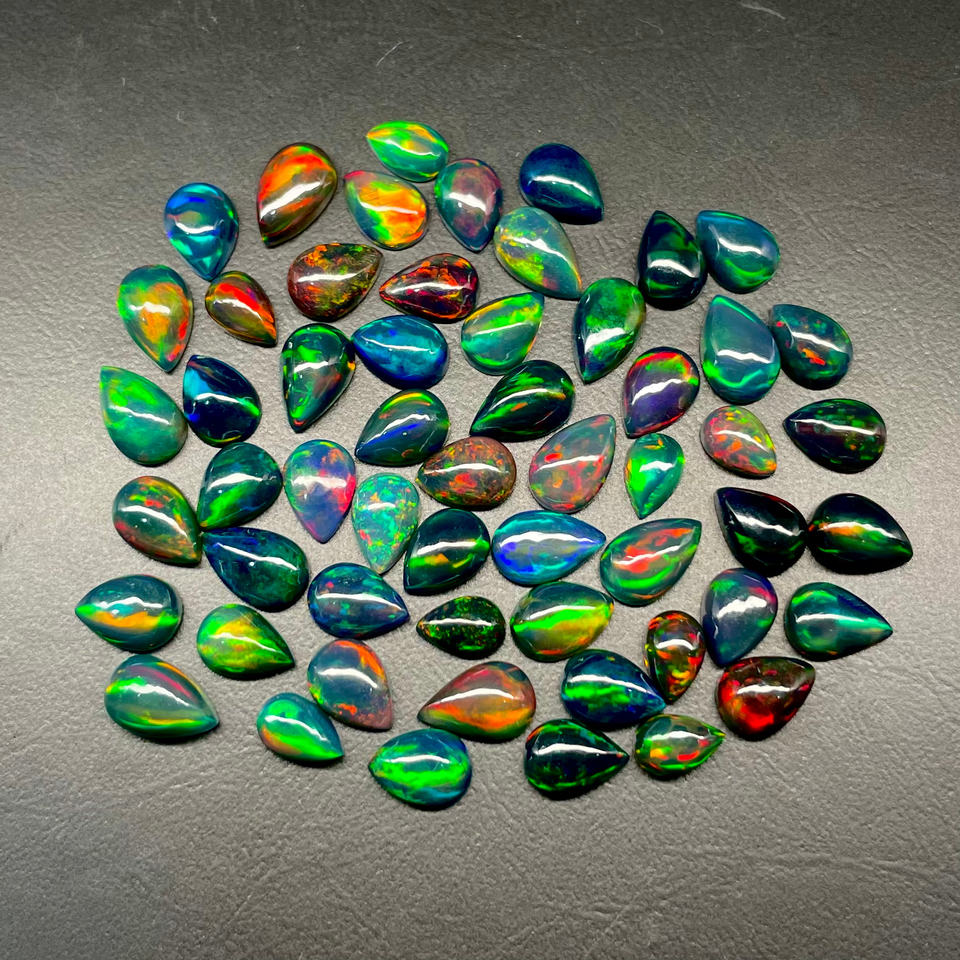 อัญมณีหลวมทรงลูกแพร์ทรงหลวมโอปอลคาร์โบชองสีดำจากเอธิโอเปีย