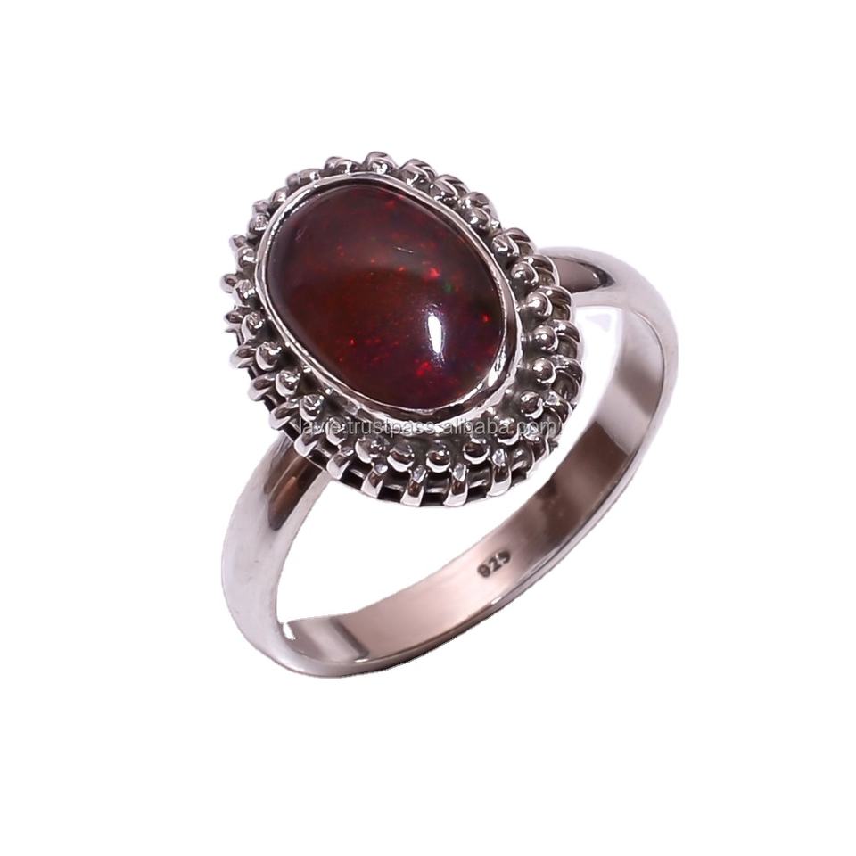 แหวนพลอยโอปอลสีดำของเอธิโอเปียแฮนด์เมดอินเดียเงิน925สเตอร์ลิงเครื่องประดับชั้นดีคลาสสิกขายส่งจำนวนมากสำหรับงานแต่งงานที่เชื่อถือได้