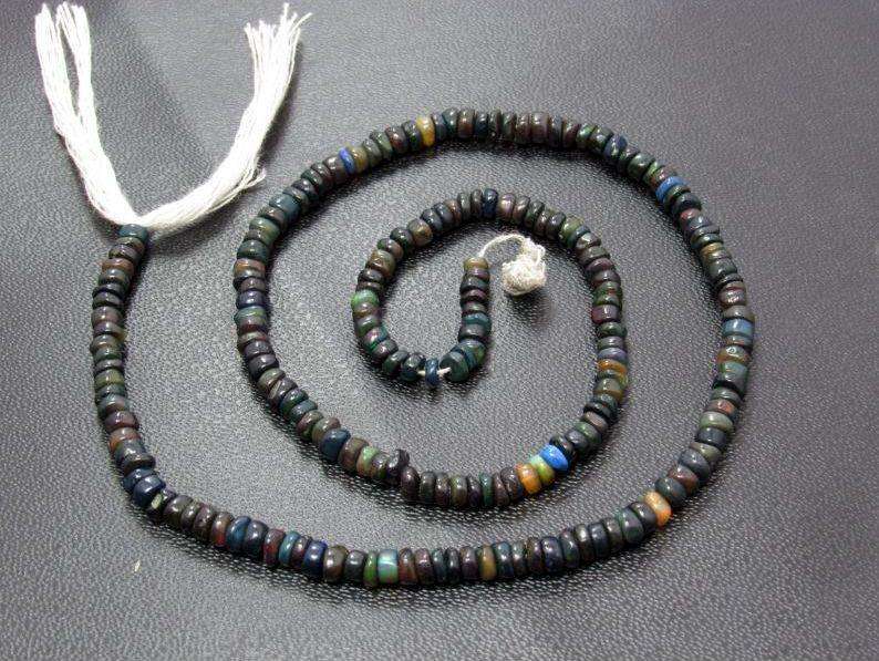 โอปอลดำเอธิโอเปียทรงกลมเรียบ ลูกปัดพลอยสำหรับทำเครื่องประดับ ขนาด 2 มม.-3 มม. ของแท้ ผ่านการประเมินโดยบุคคลที่สาม