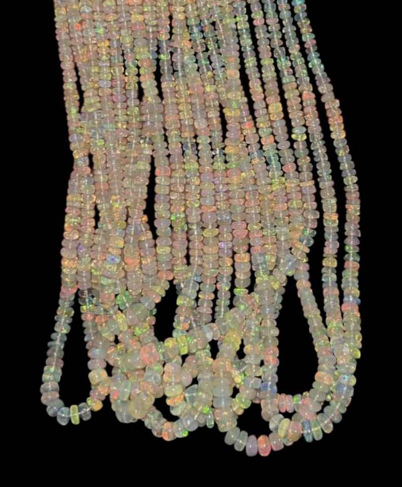 Ethiopian Fire Opal Smooth Rondelle Beads 3.5-5mm Natural Opal Strand Loose Gemstone Beads for Jewelry Necklace Bracelet Making