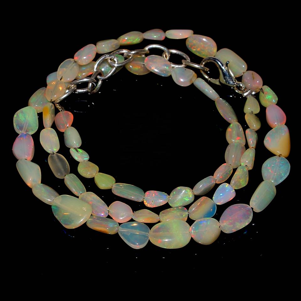 สร้อยคอลูกปัดโอปอลสีทองหลากสี