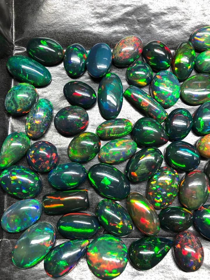 โอปอลดำธรรมชาติจากเอธิโอเปีย รูปทรงหลังเบี้ย สำหรับทำเครื่องประดับ คุณภาพระดับไฟ ได้รับการรับรองจากผู้ตรวจสอบบุคคลที่สาม ชุด DIY รูปทรงคละแบบ ฟรี