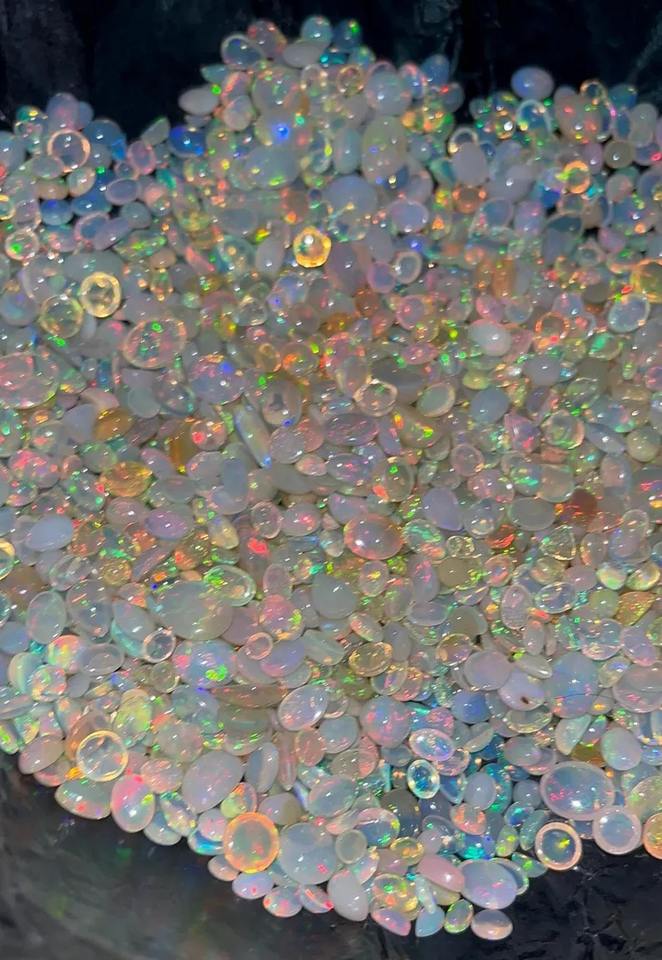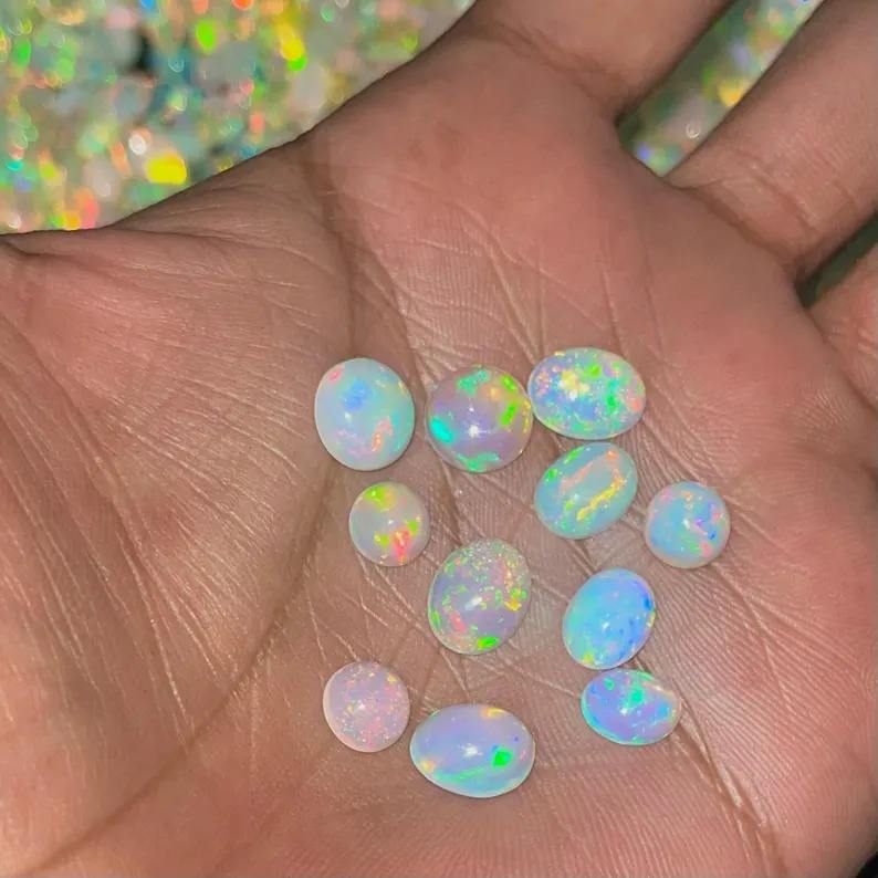 พลอยโอปอลทรงหลังเบี้ยจากน้ำผึ้งธรรมชาติโอปอลอัญมณีหลายไฟทรงหลวมชั้นยอดได้รับการรับรองจากชาติพันธุ์วิทยาสำหรับผสม