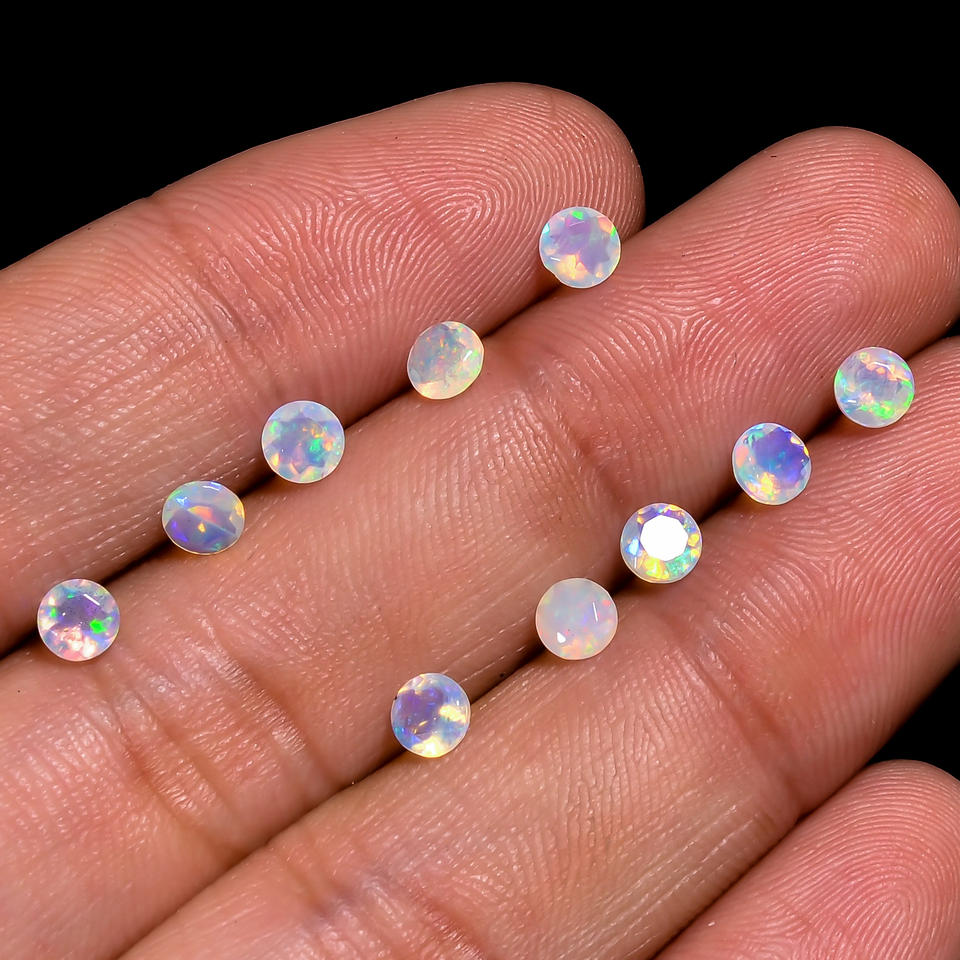 โอปอลธรรมชาติเอธิโอเปียอัญมณีทรงหลวมตัดอย่างยอดเยี่ยมสำหรับทำเครื่องประดับสามารถปรับแต่งขนาดได้4.0x4.0x3.0มม. หลายไฟ0.20กะรัต