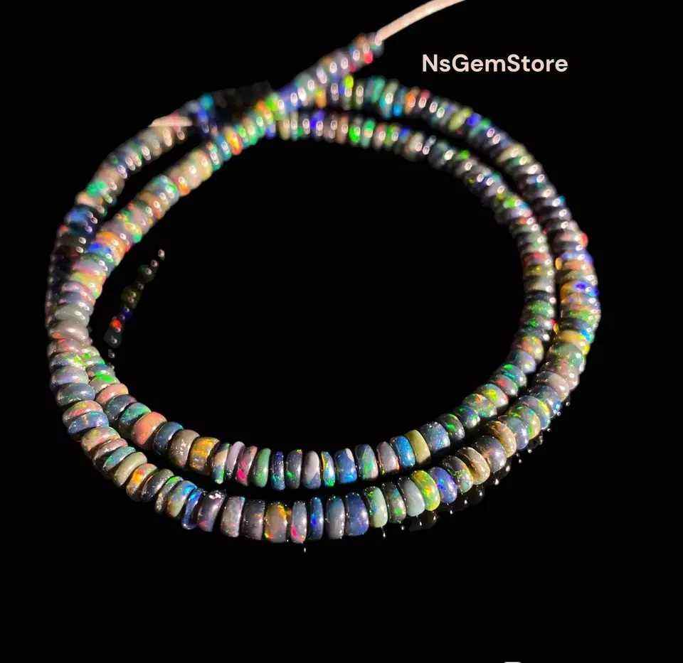 ลูกปัดโอปอลธรรมชาติเอธิโอเปียทรงกลมสีดำฉูดฉาดฉูดฉาดโอปอลสำหรับเครื่องประดับหินประจำเดือนเกิด