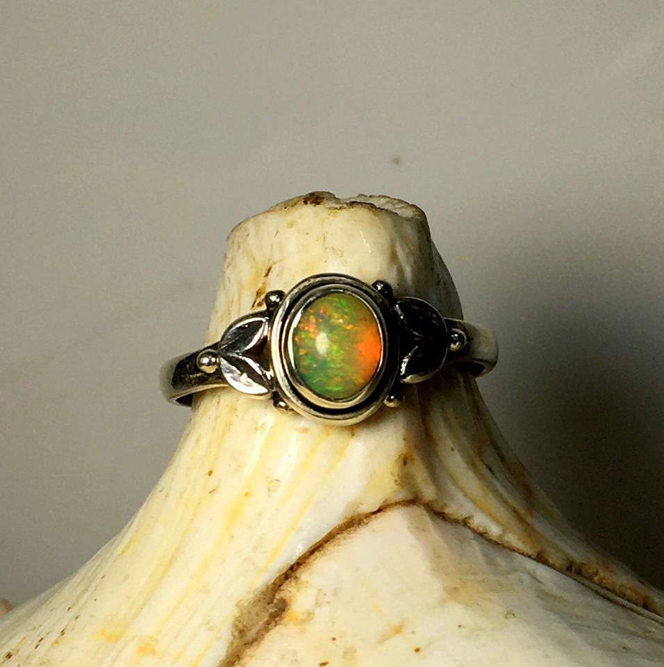 แหวนพลอยโอปอล92.5เงินแท้โอปอลของเอธิโอเปียของขวัญวันครบรอบแต่งงานแบบธรรมชาติคุณภาพดี